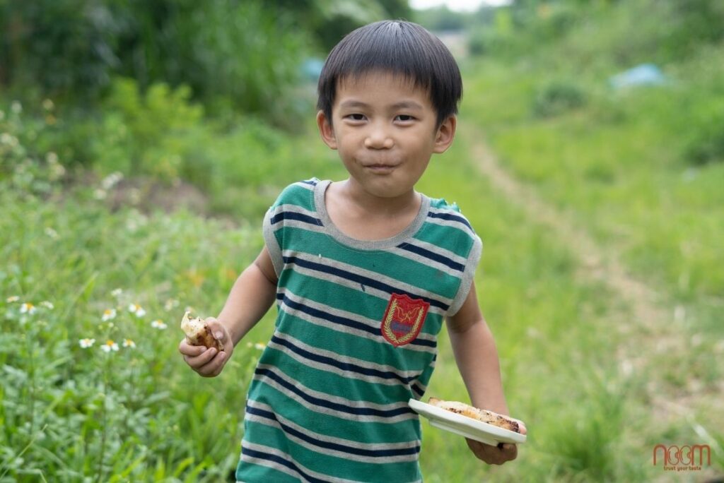 Chuối nếp nướng “nhà làm” là một trong những món khoái khẩu dành cho các “siêu quậy” tại Rơm Vàng.