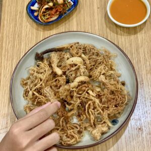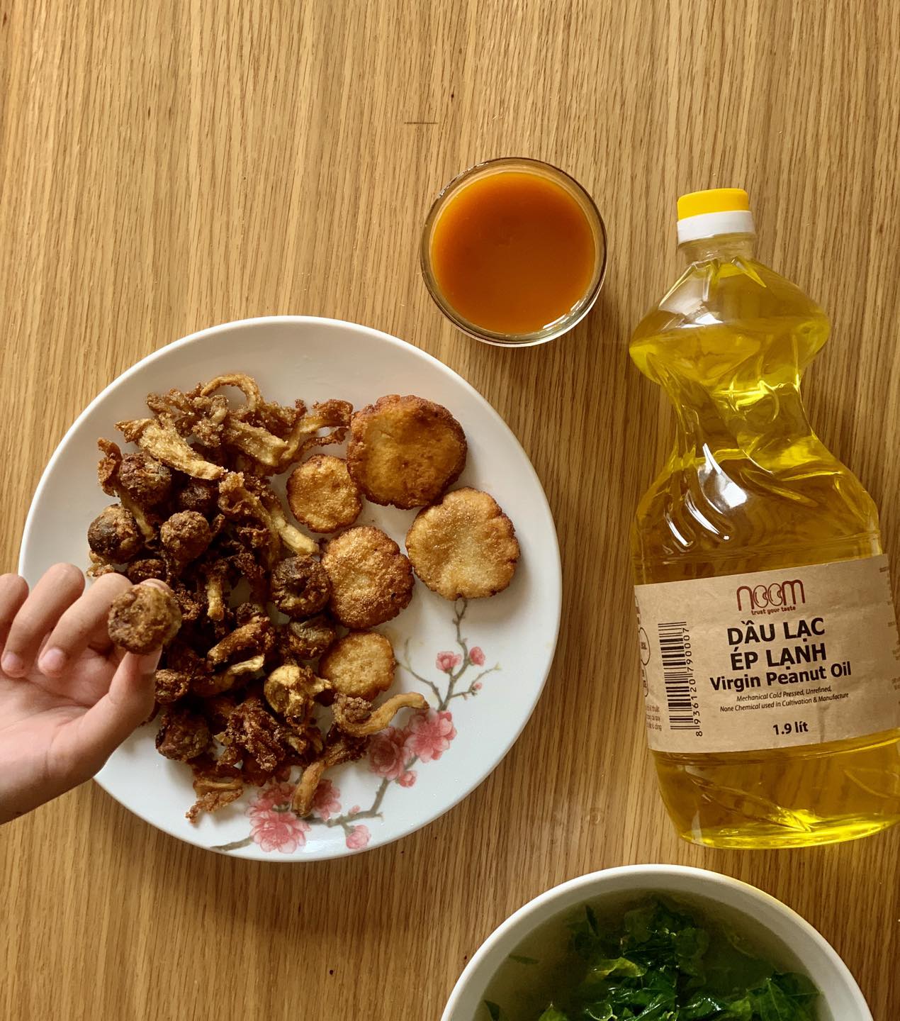 Xóc bột KHÔ qua thực phẩm, rắc cho bớt vụn bột rồi thả vào dầu đang sôi. Để yên thực phẩm 1 phút trước khi lật trở Với các loại rau củ, nấm, nên vắt cho bớt nước trước khi xóc bột Món chiên ngon nhất khi chiên bằng Dầu Phộng Ép Lạnh