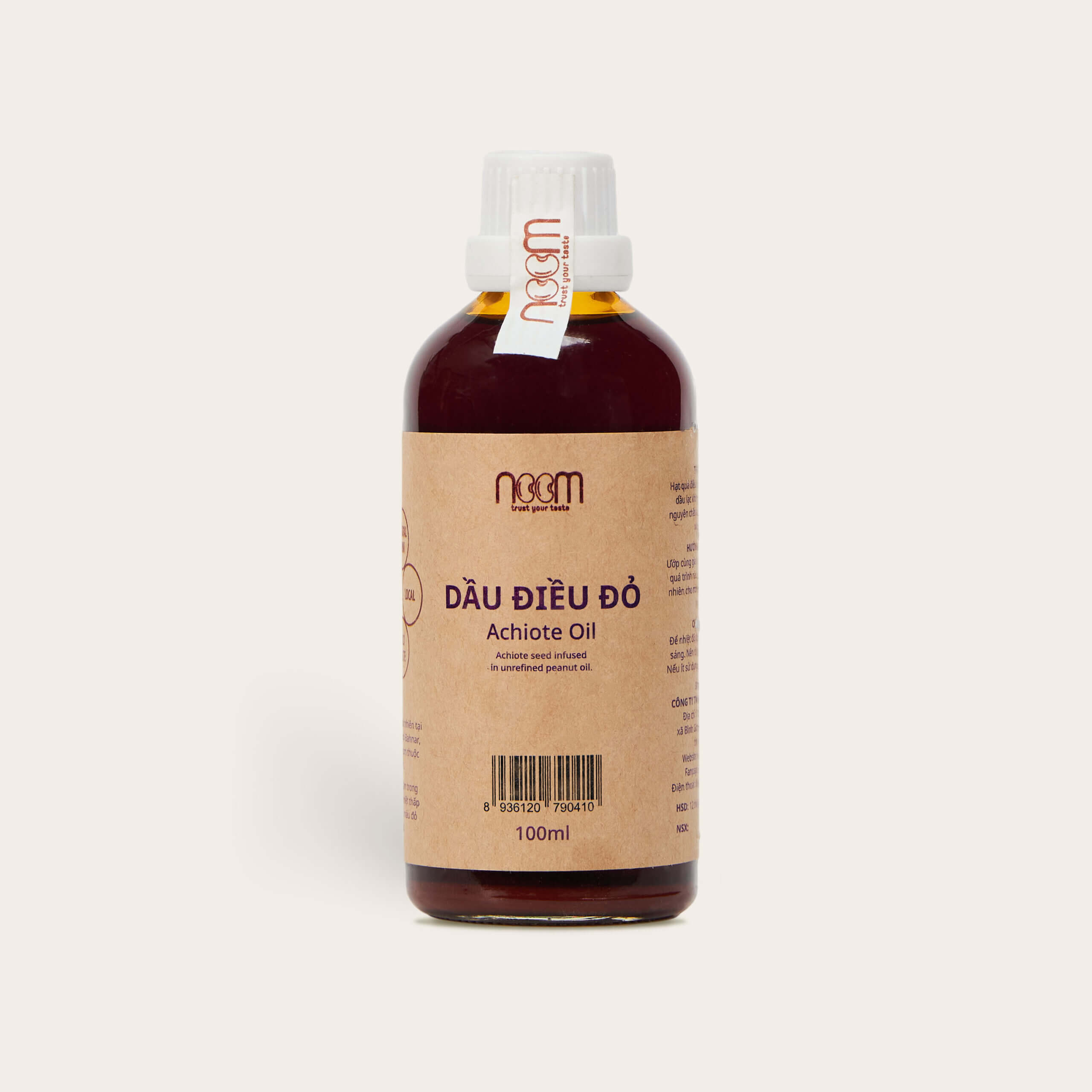 Dầu điều đỏ noom được làm từ hạt quả điều đỏ mọc tự nhiên tại vườn nhà hộ dân người Bahnar, ở farm vệ tinh của noom thuộc tỉnh Kon Tum, được ngâm trong dầu lạc noom và gia nhiệt thấp để hạt thôi ra dầu có màu đỏ tự nhiên nhất.
