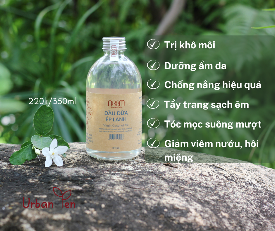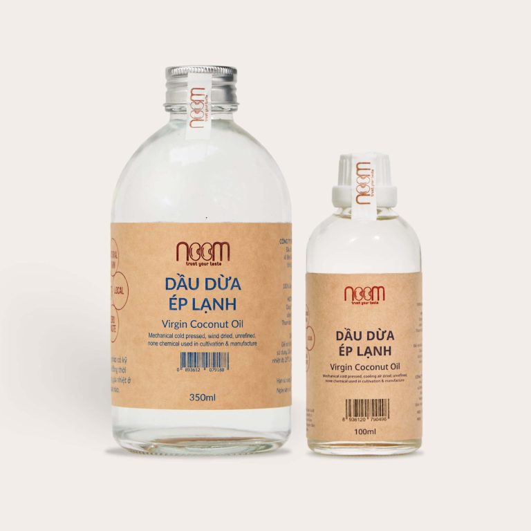 Nguyên liệu của dầu dừa ép lạnh noom gồm 100% cơm dừa tươi thu hoạch từ vườn hữu cơ sinh thái tại Bến Tre với phương pháp canh tác hoàn toàn không hóa chất, chỉ bồi đất phù sa và duy trì độ ẩm bằng đường mương tự nhiên, không cần tưới tiêu hay bón phân.