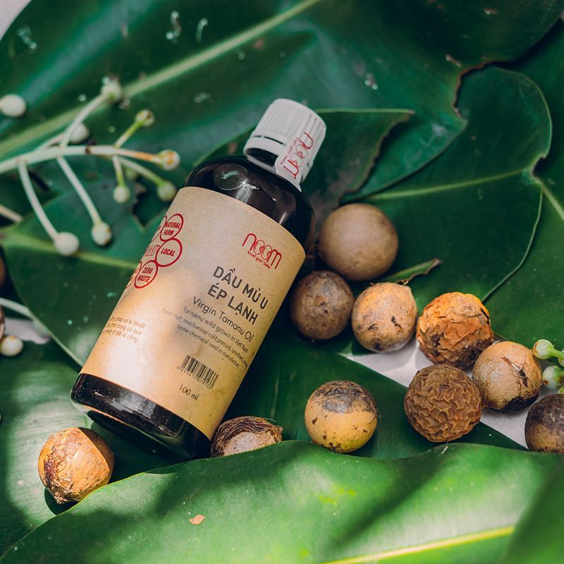 100% dầu mù u ép lạnh, nguyên chất, không tinh luyện.