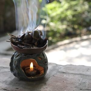 Bạn đặt nến phía dưới, đặt thảo mộc khô tùy thích phía trên. Khi sử dụng lần đầu bếp sẽ có hiện tượng nứt sợi tóc khi gặp nhiệt từ nến, vết nứt này sẽ không ảnh hưởng đến độ bền của bếp và bạn vẫn tiếp tục sử dụng thông thường cho những lần tiếp theo.