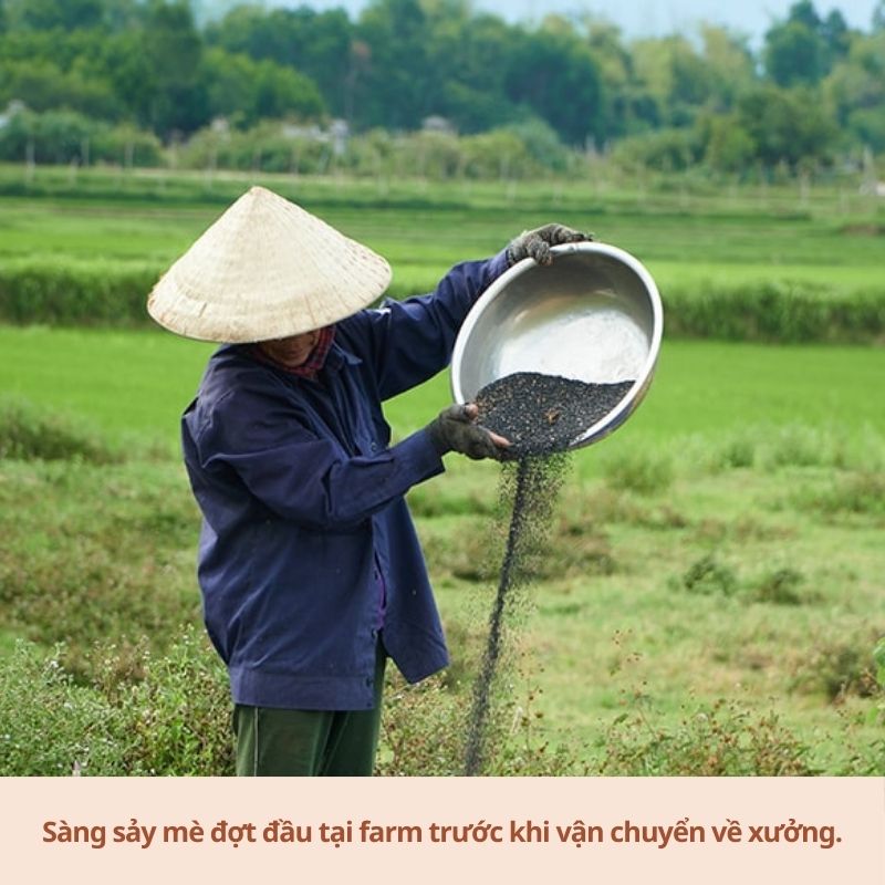 Cây mè sinh trưởng hoàn toàn tự nhiên dưới ánh mắt trời, trên đất trồng không hoá chất và không sử dụng bất cứ hình thức che chắn ánh nắng mặt trời nào.