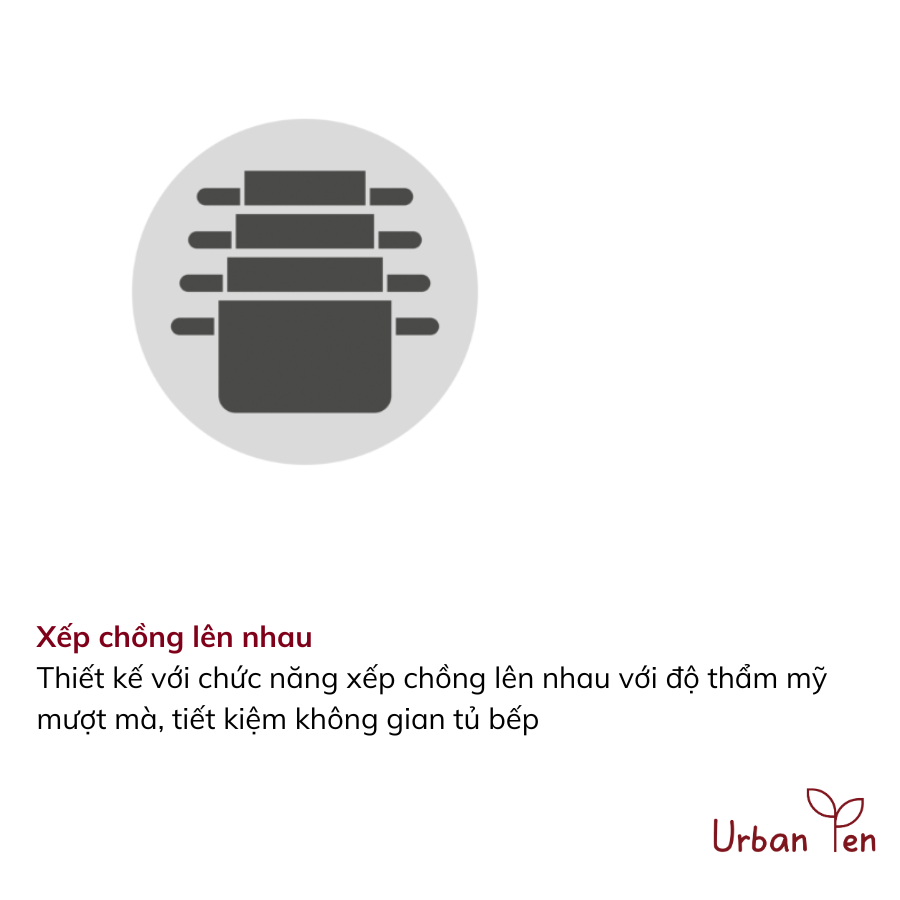 Sự tiện lợi hoàn toàn của thiết kế có thể xếp chồng lên nhau tiết kiệm không gian khiến đây trở thành chảo chiên lý tưởng cho các phần nhỏ hơn và dễ dàng bảo quản, vành rót rộng để phục vụ dễ dàng không nhỏ giọt và nhà bếp không tì vết.