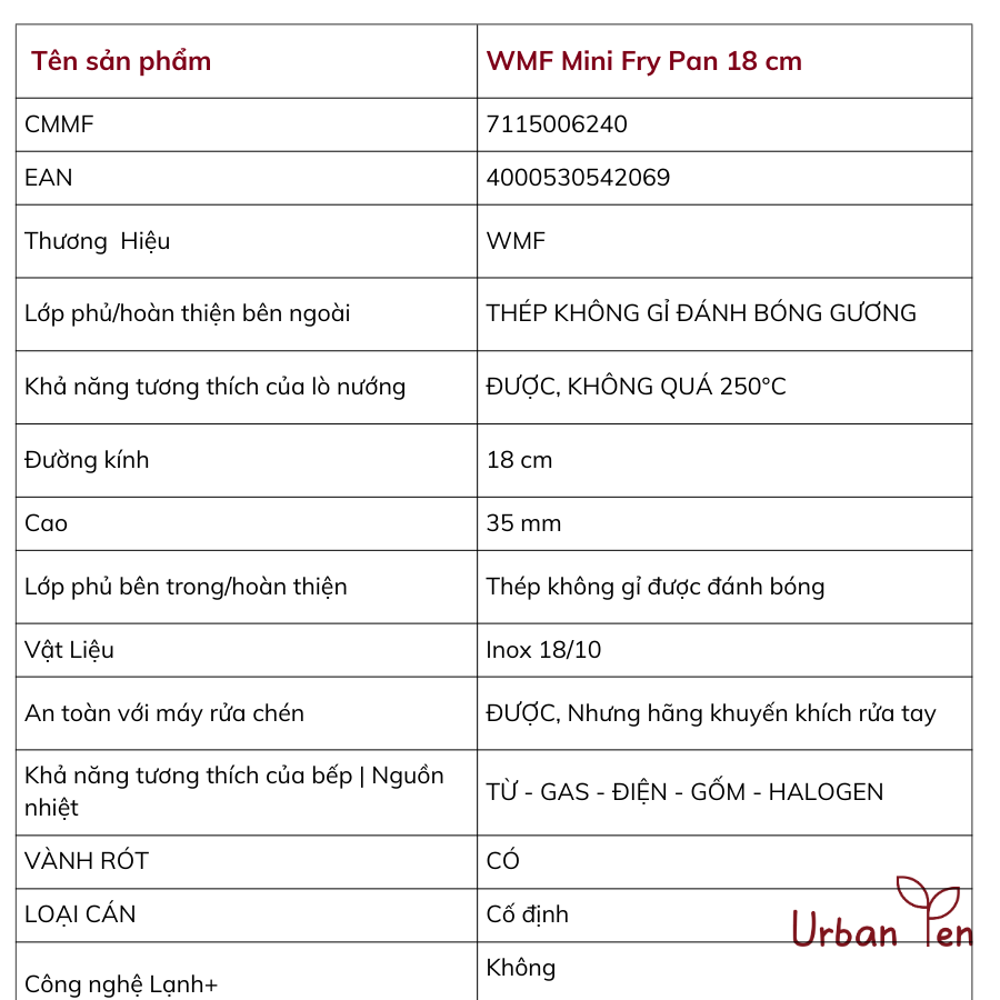 WMF Mini Frypan được chế tác từ Cromargan® kiểu dáng đẹp, tinh tế: thép không gỉ 18/10 — hứa hẹn về độ bền vượt trội, với lớp hoàn thiện bắt mắt không bao giờ khiến mọi người chú ý.