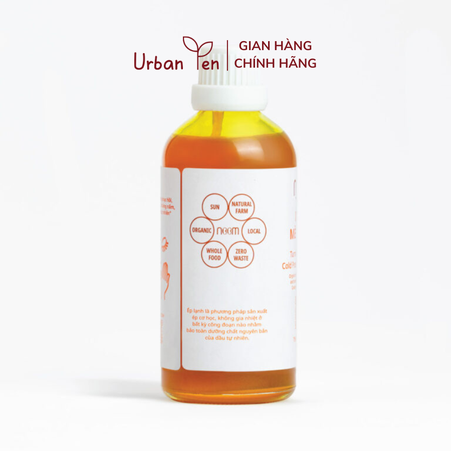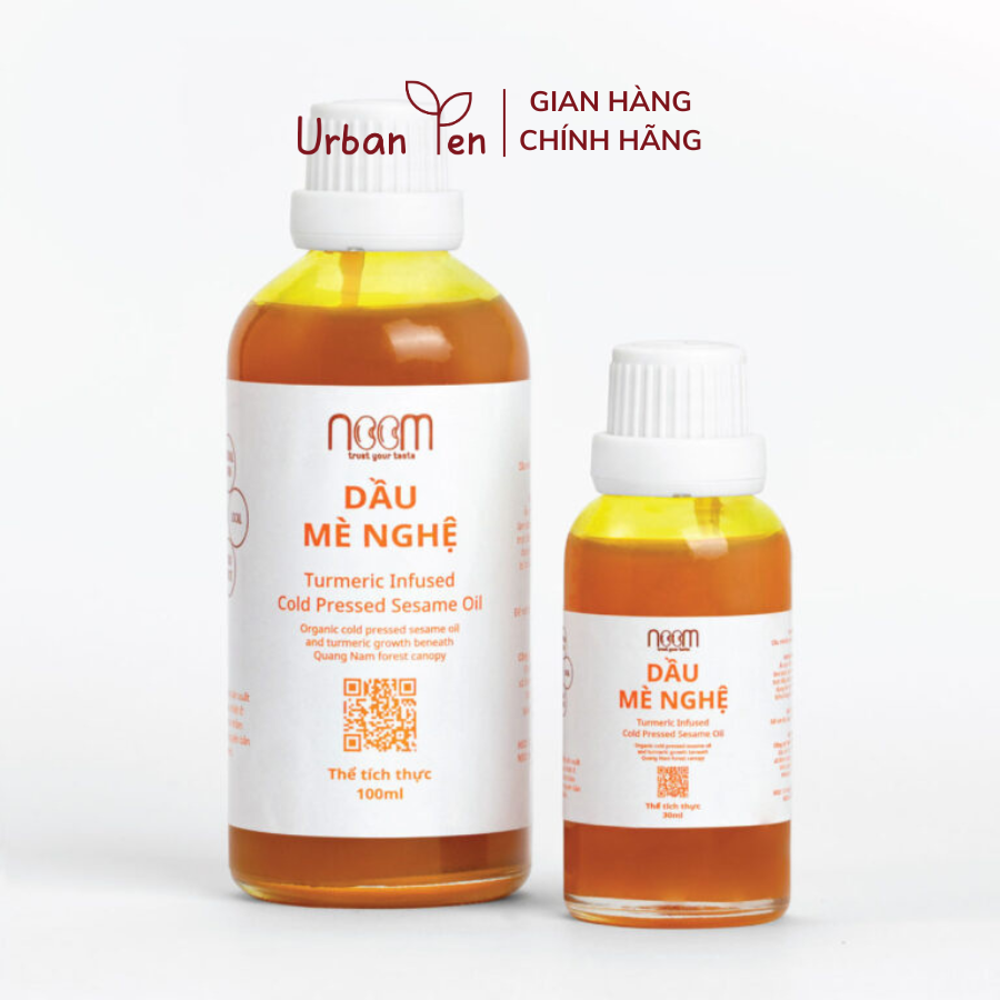 Bột nghệ với Dầu mè đen ép lạnh hữu cơ Noom trong 3 tháng. Sau đó ép cơ học, lọc kỹ và đóng chai.