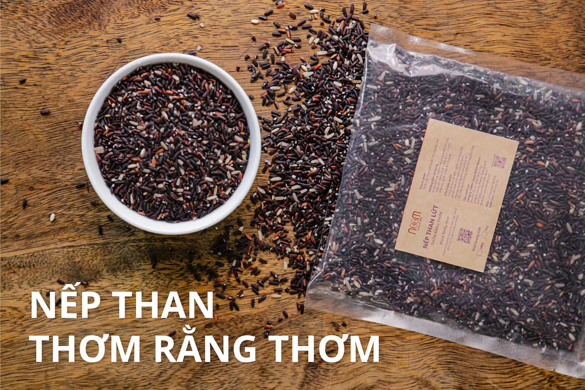 Nếp than Thơm Rằng Thơm (TRT) được lột vỏ trấu, nguyên cám nên giữ trọn các loại vitamin như B1, B6, B12, E, C,… khoáng chất cần thiết như Kali, Canxi, Sắt, Kẽm. Màu nếp đen, phần bụng nâu sẫm do hàm lượng anthocyanin cao. Dinh dưỡng dồi dào, nhiều lợi ích sức khỏe. Hạt dẻo, dính, thơm bùi đặc trưng khi nấu chín.