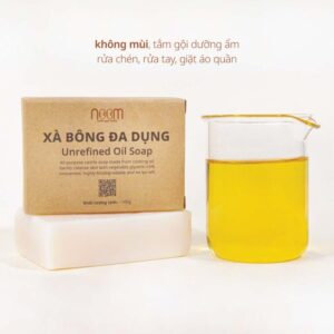 Xà bông dầu không tinh luyện được làm từ dầu mè đen/sachi/dừa nguyên chất tự nhiên, không tẩy nên phản ứng với màu dầu sẽ diễn ra chậm hơn so với chất béo. Xà bông để càng lâu càng có chất lượng tốt vì muối natri ổn định mặc dù có mùi dầu đậm, cái mùi không phải là dễ chịu, không nịnh mũi chúng ta.
